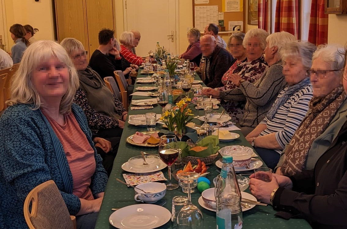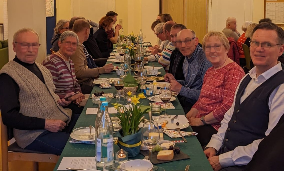 Im Anschluss an den Gottesdienst begrüßte Pfarrer Florian Wagner zu Kaffee und Kuchen. An der liebevoll eingedeckten, großen Tafel, verbrachten wir einen entspannten Nachmittag.