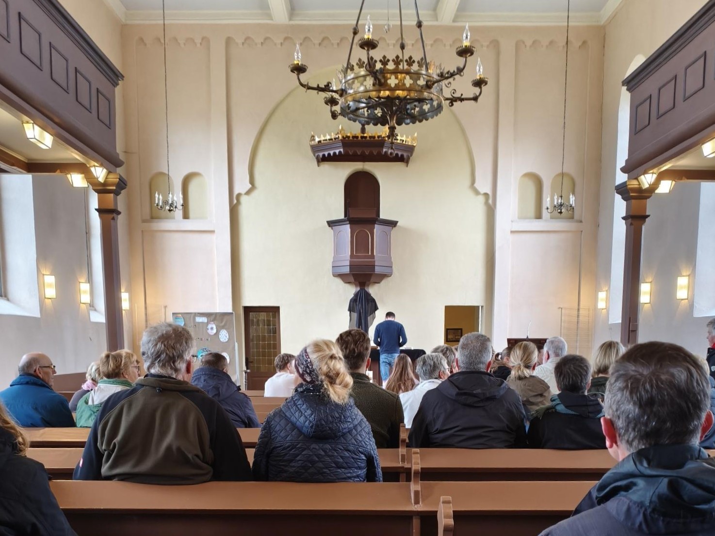 Der erste Aktionstag fand am Sonntag, dem 29. Juni 25 statt. Während des Dorfflohmarkts haben die Konfis interessierte Besucher durch unsere Kirche geführt und dabei ihr neu erlerntes Wissen über unsere Kirche weitergegeben. Die wichtigsten historischen Eckdaten spielen natürlich eine Rolle; es wurden Orgel, Turmuhr, Altar, Taufbecken und Osterkerzenständer genauer unter die Lupe genommen.